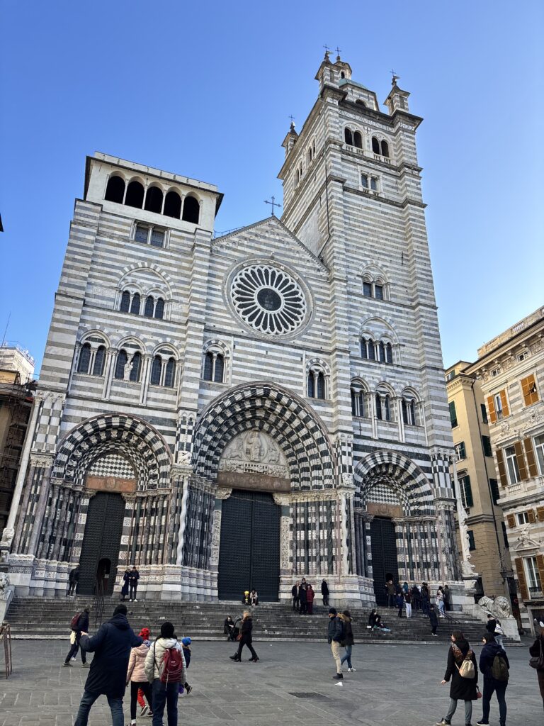Poranek wita nas pięknym słońcem. Ja dodatkowo znajduję w pobliżu czynny basen i z wielką przyjemnością korzystam z jego potencjału. Zaraz po tym wychodzimy na miasto. Jest to dzień meczowy co ma duże znaczenia dla rozwoju wydarzeń tegoż dnia. Już po pierwszych krokach okazuje się że cała Genua jest usytuowana na wzgórzach. Podejście pod pierwszą atrakcję, nie powiem daje popalić. Oczywiście miasto posiada świetną sieć połączeń autobusowych ale tym razem nie korzystamy z tego przywileju. Mijamy Viletta di Negro, by po chwili rozpocząć spacer po ulicy która wpisana jest na listę dziedzictwa UNESCO. Ulica to nie jest główny punkt programu. Pałace rozsiane wzdłuż tejże ulicy stanowią magnes. Palazzi dei Rolli. To o nich mowa. Absolutnie wyjątkowe. Chyba tak jak sama Genua. Miasto które przez wiele lat walczyło z Wenecją o miano dominanta na Morzu Śródziemnym, miasto które miało potężną flotę, miasto na ówczesne czasy potężne i zjawiskowe. Postanowiliśmy choć w małej części zweryfikować te informacje. I tak trafiliśmy na wspomnianą via Garibaldi. Większość pałaców jest otwarta i można je zwiedzać ale w naszym przypadku, na szybkim city break, musieliśmy wybierać. Tym razem pałace podziwialiśmy tylko od frontu. Natchnieni pięknem genueńskich pałaców postanowiliśmy zobaczyć Genua z góry. Idealnym do tego miejscem jest taras widokowy wchodzący w skład Castello D’Albertis, stanowiący jednocześnie Muzeum światowej kultury czyli Museo delle Culture del Mondo. Po kilkunastu minutach wspinaczki raczymy się widokami. Faktycznie część portowa i nabrzeżna Genui robi wrażenie. Poza tym cudowne słońce. Prawdziwa dolce – vita. Zważywszy na to że o 15 rozpoczyna się piłkarskie święto z udziałem drużyn Genui i Pisy wracamy do centro storico. Postanawiamy po zejściu z zamku coś zjeść. Naszym łupem pada pyszna focaccia. Wchodzimy w arterię wąskich, pięknych uliczek. Przy Piazza Banchi podziwiamy piękny kościół św. Piotra czyli La Chiesa di San Pietro in Banchi. Zerkam na lewo i mym oczom pojawia się sklep z oficjalnymi pamiątkami zespołu piłkarskiego Genoa a że wybieram się na mecz warto kupić choć szalik. Okazuje się że wykupiony cały nakład. No cóż. Poszukamy w kolejnym. W krótkiej rozmowie z ekspedientką dowiaduję się że przede mną jeszcze dwa sklepy. Kolejny bardzo ważny punkt w Genui to katedra czyli Duomo. Piazza San Lorenzo i Cattedrale di San Lorenzo stanowią obowiązkowy punkt na genueńskiej mapie podróży. Katedra jest majestatyczna i przez to że Piazza San Lorenzo nie jest wielkim placem, dodatkowo otoczonym kamienicami, katedra robi wrażenie wielkiej. Tuż obok katedry wyrasta nam kolejny, piękny budynek. Mowa o Palazzo Ducale. Pałac Dożów Genui przy piazza De Ferrari, był oficjalną rezydencją doży genueńskiego przez cały okres trwania Republiki Genui. Pałac jest otwarty dla turystów i zdecydowanie warto do niego zajrzeć. Szczególnie sufity w poszczególnych komnatach budzą zachwyt. Czym jednak byłby wyjazdy bez niespodzianek.