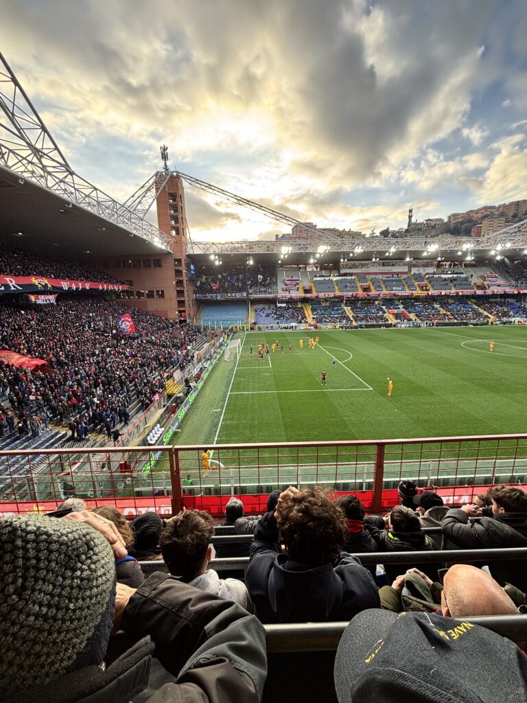 W tym momencie zaczyna się nasza nowa, zupełnie niespodziewana przygoda związana z parkingiem, samochodem, Policją i meczem. Otóż podczas podziwiania katedry dzwoni do nas właściciel apartamentu z zapytaniem, gdzie jesteśmy? W krótkiej pierwszej rozmowie dowiedziałem się że nasz samochód będzie holowany z parkingu przez policję, ponieważ w czasie trwania meczu parking jest używany przez władze klubowe. I podobno była jakaś kartka przyklejona na znak z informacją że pomiędzy 14 a 18 nie można parkować żadnych aut. Jesteśmy na Piazza San Lorenzo. GPS pokazuje że na pieszo na parking mamy jakieś 30 minut. Dowiadujemy się że mamy wracać szybko. Kolejny telefon i słyszę jak właściciel apartamentu negocjuje z policją, próbując przedłużyć maksymalnie czas do naszego powrotu. Musimy znaleźć taksówkę. Nie ma. Jak na złość. W międzyczasie znajduję drugi sklep z pamiątkami Genoa, tutaj też brak szalików. Znajdujemy taksówkę. Proszę kierowcę o maksymalnie szybką jazdę. Jesteśmy na miejscu. Widzimy jak dwa przednie koła naszego samochodu stoją już na lawecie. Zaczynam negocjacje. Krzysiek zapomina jak się nazywa. Adam znika w apartamencie. Ostatecznie po długich negocjacjach samochód zostaje na miejscu, mam go tylko przestawić natomiast urocza Pani policjantka nakłada na nas mandat w wysokości 35 euro. Pytam jednak z ciekawości ile dodatkowo kosztuje laweta na parking policyjny, 138 euro plus dodatkowy koszt za parkowanie samochodu. Podczas rozmowy z policją, uwypukliłem fakt informacji znajdującej na tymczasowym znaku. Poza tym gdybym nie rozmawiał po włosku co dalej? Skończyło się szczęśliwie w sumie. Dodatkowa przygoda. Dodatkowe emocje, na tyle duże że podczas meczu siedziałem w krótkim rękawku, budząc zainteresowanie włoskich kibiców. Ale za nim dotarłem na stadion, udało się zaparkować samochód na parkingu podziemnym, 20 minut drogi od stadionu. Zresztą ten parking też zrobił nam psikusa. Gdy chciałem za niego zapłacić, okazało się że dwa automaty nie działają. I jak wyjechać mamy z niego. Spytacie. Ratunkiem był telefon alarmowy do obsługi. Brama się otworzyła. Sam mecz był ciekawym wydarzeniem. Według mnie gdyż moi kompani nie było zachwyceni lub też zachwyceni umiarkowanie. Brak szalika. Kibice szczególnie gospodarzy w głównym sektorze potrafią zrobić niezły kocioł. Mecz kończy się wynikiem 1:1, co dla gospodarzy nie jest dobrym wynikiem. Pisa się cieszy. Ale czy ten punkt wystarczy do utrzymania w najwyższej klasie rozrywkowej?