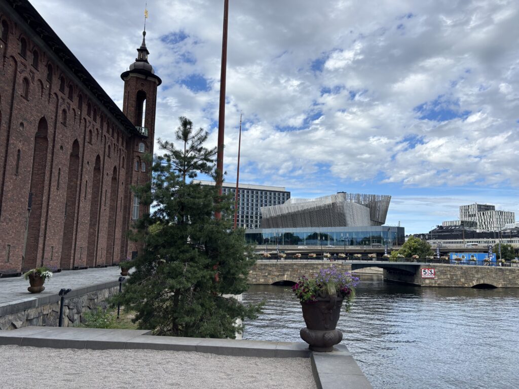 Docieramy do centrum Sztokholmu. Kolejny obiekt na naszej liście to Stadshuset czyli Ratusz. Widok z nabrzeża na centralną część stolicy wzbudza zachwyt.