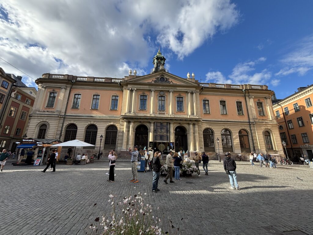 Zaraz po tym pokonujemy Most Północny i po prawej stronie stajemy przed budynkiem Riksplan. Obok Pałac Królewski. Muzeum Narodowe. Pokonując kolejny most jesteśmy w Gamla Stan. To niewielka wyspa jest jednocześnie dzielnicą Sztokholmu. Brukowana starówka, kolorowe kamienice. Katedra Storkyrkan. Tu zatrzymujemy się na nieco dłużej.