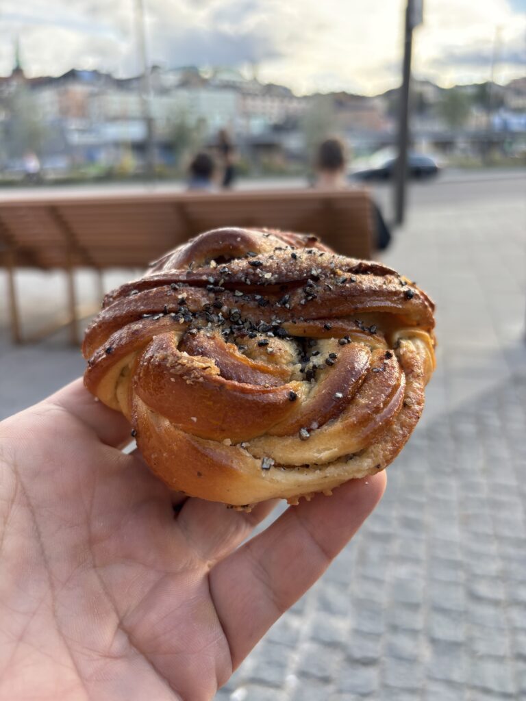 Szwedzi mają swoją fikę czyli czas wolny na kawę i my na chwilę zamieniamy się w Szwedów i po zakupieniu bułeczek z kawą, postanawiamy usiąść nad rzeką, wpatrując się w tętniące życiem miasto.