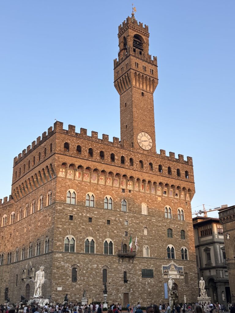 Dalej via Orsanmichele udajemy się na Piazza della Signoria. Głównym budynkiem na wspomnianym placu jest Palazzo Vecchio z górującą wieżą ratuszową. Balkon i przednia fasada budynku ratusza powinna być znana fanom Hannibala. Otóż wraz z Palazzo Capponi, tenże budynek był świadkiem scen wyreżyserowanego przez Ridleya Scotta filmu „Hannibal”. Prawdziwa uczta dla filomanów.