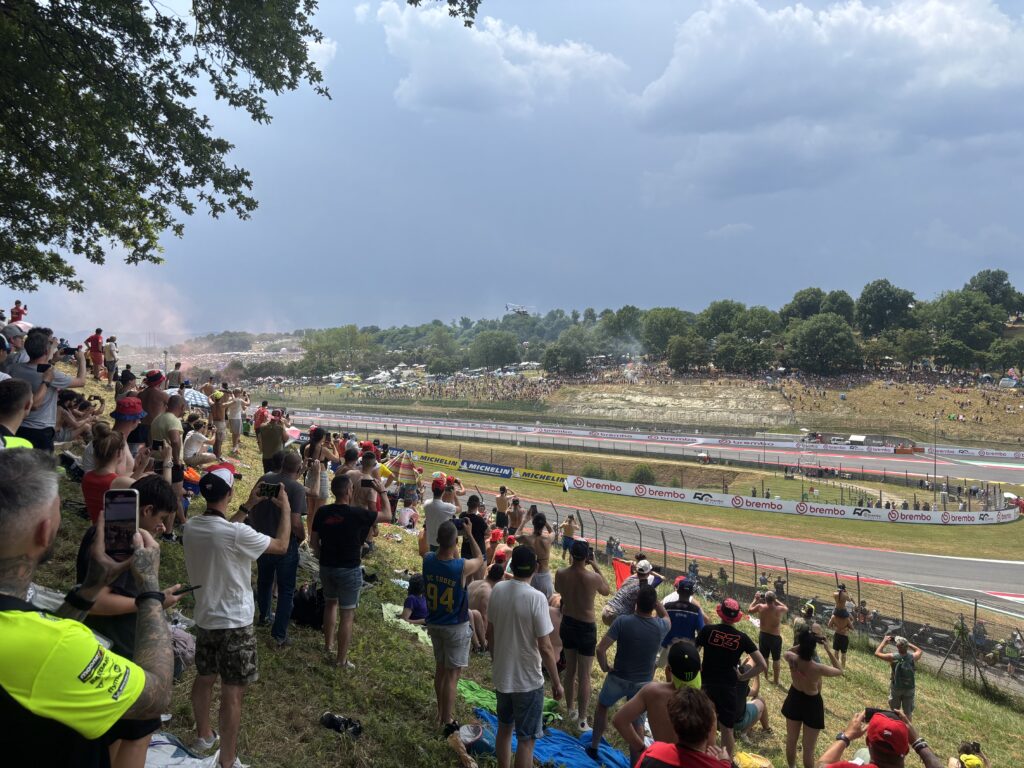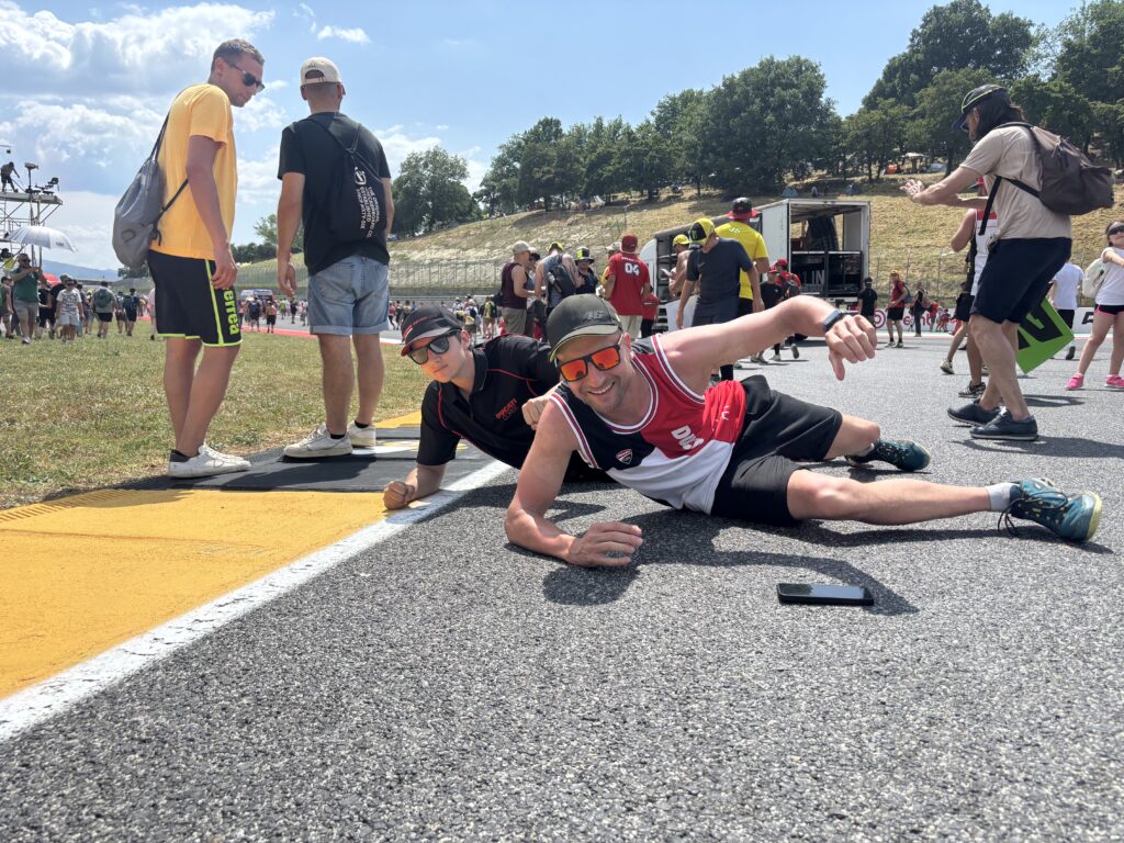 Niedziela jest ostatnim dniem na torze. Najważniejsze wyścigi. I stąd zdecydowanie najwięcej kibiców. Parkingi na kilka kilometrów przed torem pozajmowane. A na samym torze inny festiwal. Kolorowo, donośnie. Ciepło. Emocjonująco. Aperolowo. Same wyścigi bardzo ciekawe, dopięcie dwudniowych przygotowań. Kibice Peco w tym my,rozczarowani. Kibice Marqueza, hiszpańskiego mistrza triumfują. Po startach wygrywają kibice. Mamy możliwość wejścia na tor i zrobienia pamiątkowych zdjęć bezpośrednio z pola walki. Najwierniejsi fani szukają nawet najdrobniejszych części motocykla. Kawałek owiewki, resztka opony stanowi nie lada gratkę dla koneserów sportów motocyklowych.