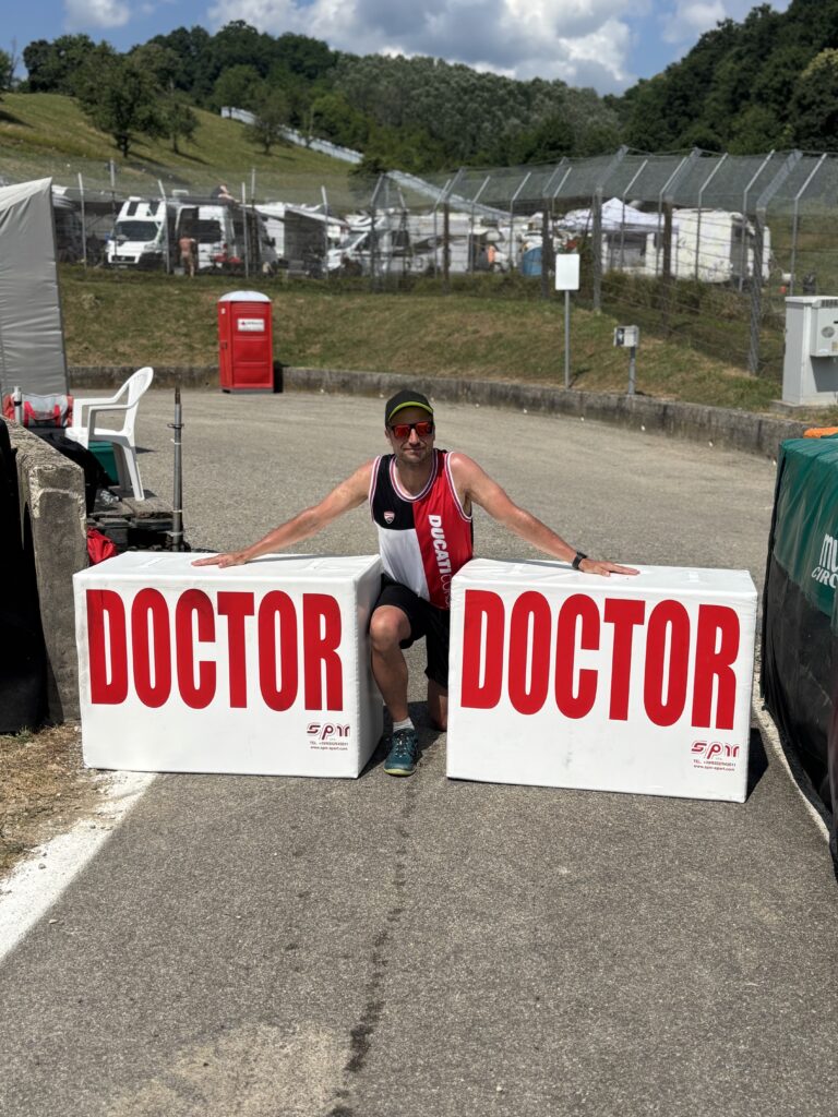 My natomiast z całym szacunkiem dla „Doctora”, przyjechaliśmy wspierać Peco. Bagnaia nalezy do czołówki wyścigowej, jeździ w fabrycznym teamie Ducati, startuje u siebie i on sam przystępował do treningów z wielkimi nadziejami. I my również. Jaki był tego efekt dodam na końcu ale emocji, szczególnie w głównym wyścigu nie być za wiele. Dobrze że był Aperol.