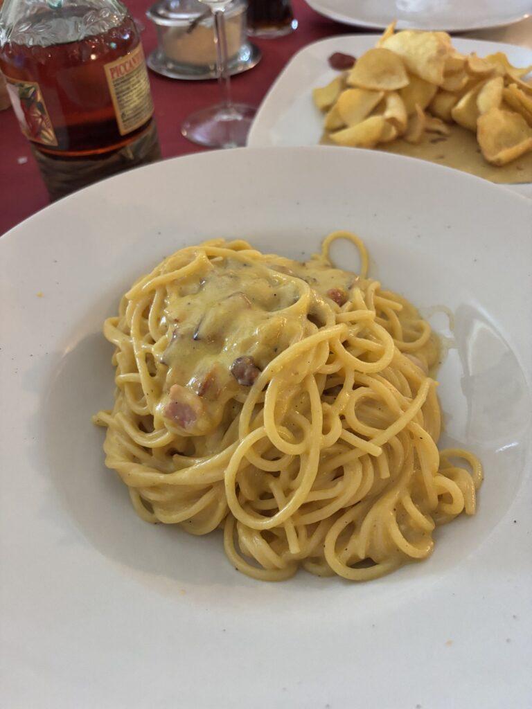 Zjadamy kolację i zmęczeni całodniową podróżą zasypiamy. Niedzielny poranek. Razem z Robertem udajemy się na zakupy. Chłopaki czekają na świeże cornetto. Poza tym sery, szynka. Dobra włoskiej kuchni.